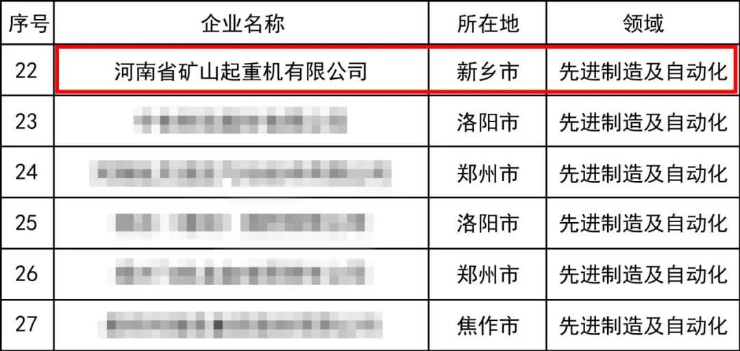 Henan Mine Crane listed among 'Henan Province Leading Innovative Enterprises'